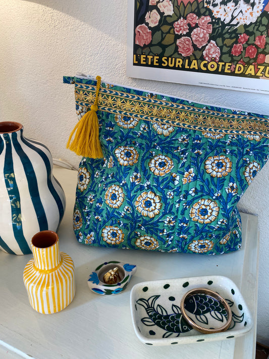 Pochette ordinateur ou vanity "turquoise flowers"