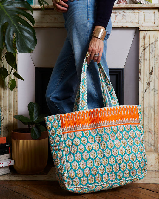 Grand Cabas "Quilted" Turquoise rosaces