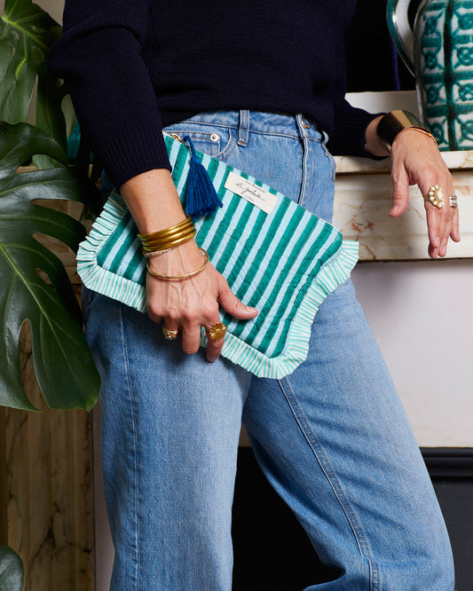 Pochette à volants "Quilted" Rayures bleues intenses